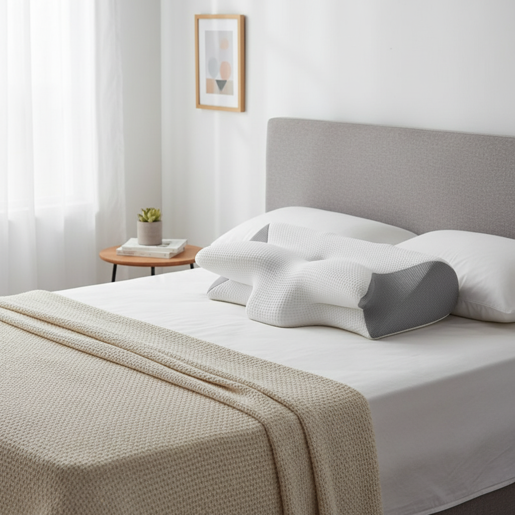 Somnia-kudden håller din nacke och ditt huvud i en naturlig position, vilket minskar spänningar och gör att du somnar snabbare och sover djupare.